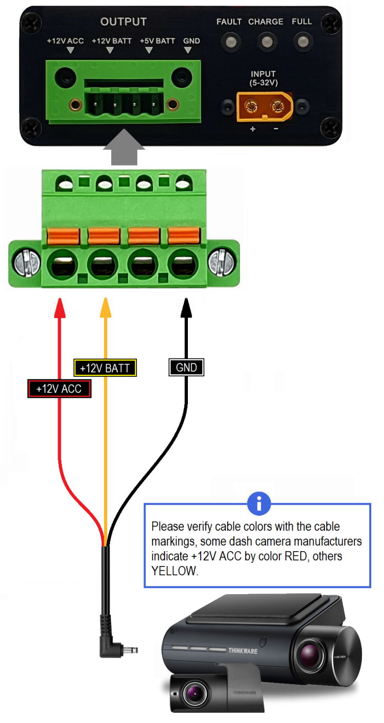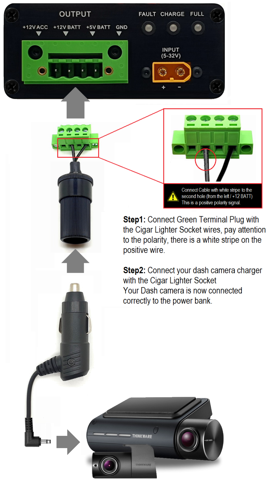 There are 2 available methods to connect thinkware dash camera to the power bank Please choose which way of connection you preferred: |