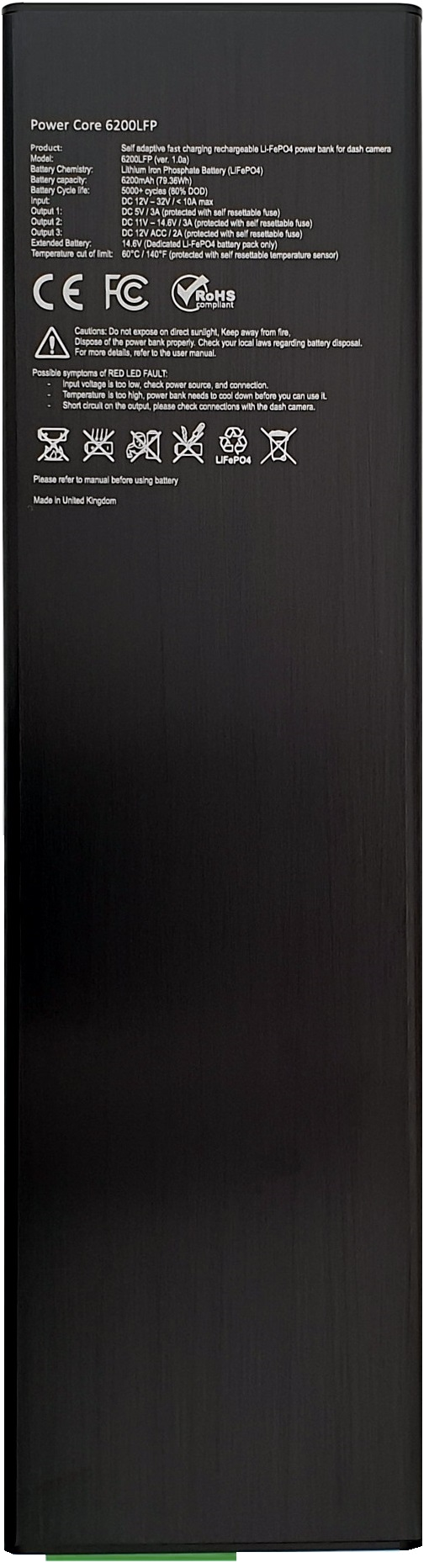Nigdy więcej problemów z rozładowaniem akumulatora samochodowego na postoju, wydajny i bezpieczny sposób, aby kamera była zawsze włączona i w trybie nagrywania, gdy tylko samochód jest zaparkowany i silnik wylaczony. System działa niezależnie w pełni adaptujac warunki pracy oraz moc ladowania, w taki sposob aby jak najszybciej ładować się (bez ryzyka degradacji samych ogniw) podczas jazdy samochodem oraz zasilac kamere samochodowa jak tylko silnik zostanie wylaczony (bez przerw w jej zasilaniu). Dzięki najnowszej technologii LiFePO4 i ultrawydajnemu układowi konwersji ładowania (LTC), Power Bank jest w pełni adaptacyjny do zrodla zasilania oraz bezobsługowy, wystarczy z jednej strony podłączyć kamerę samochodową do powerbanku, z drugiej strony zrodlo zasilania i to wszystko. Power Bank zapewni ciągłe i nieprzerwane zasilanie Twojej kamery samochodowej.